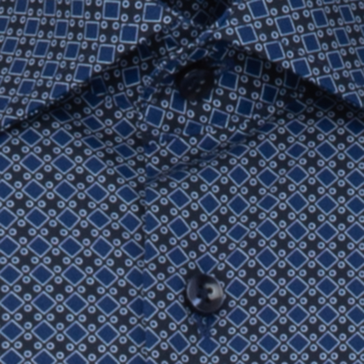 • Приталенный силуэт, Классический воротник, Классический (на пуговице), Принт, Синий