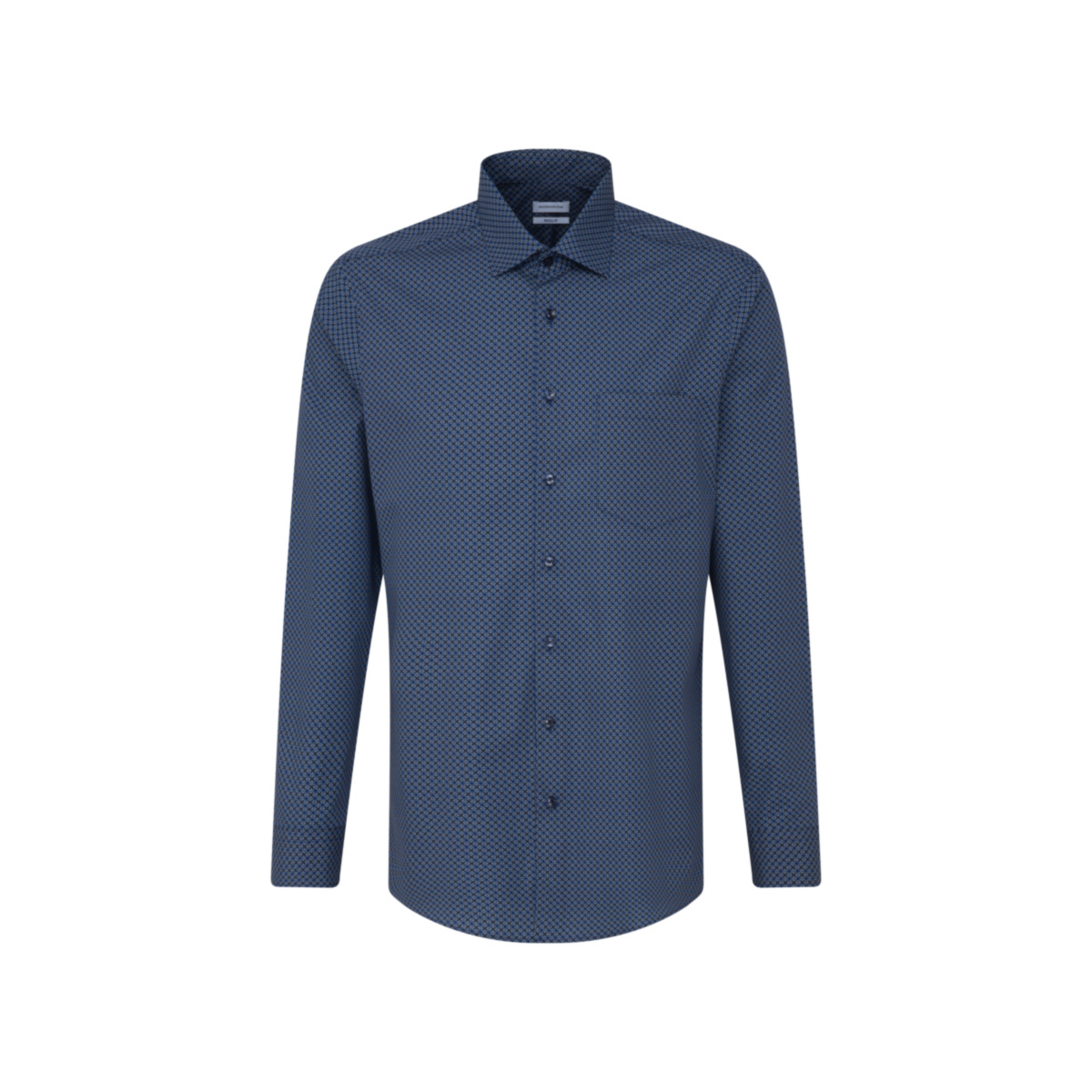 • Полуприлегающий силуэт, Классический воротник, Классический (на пуговице), Принт, Синий
