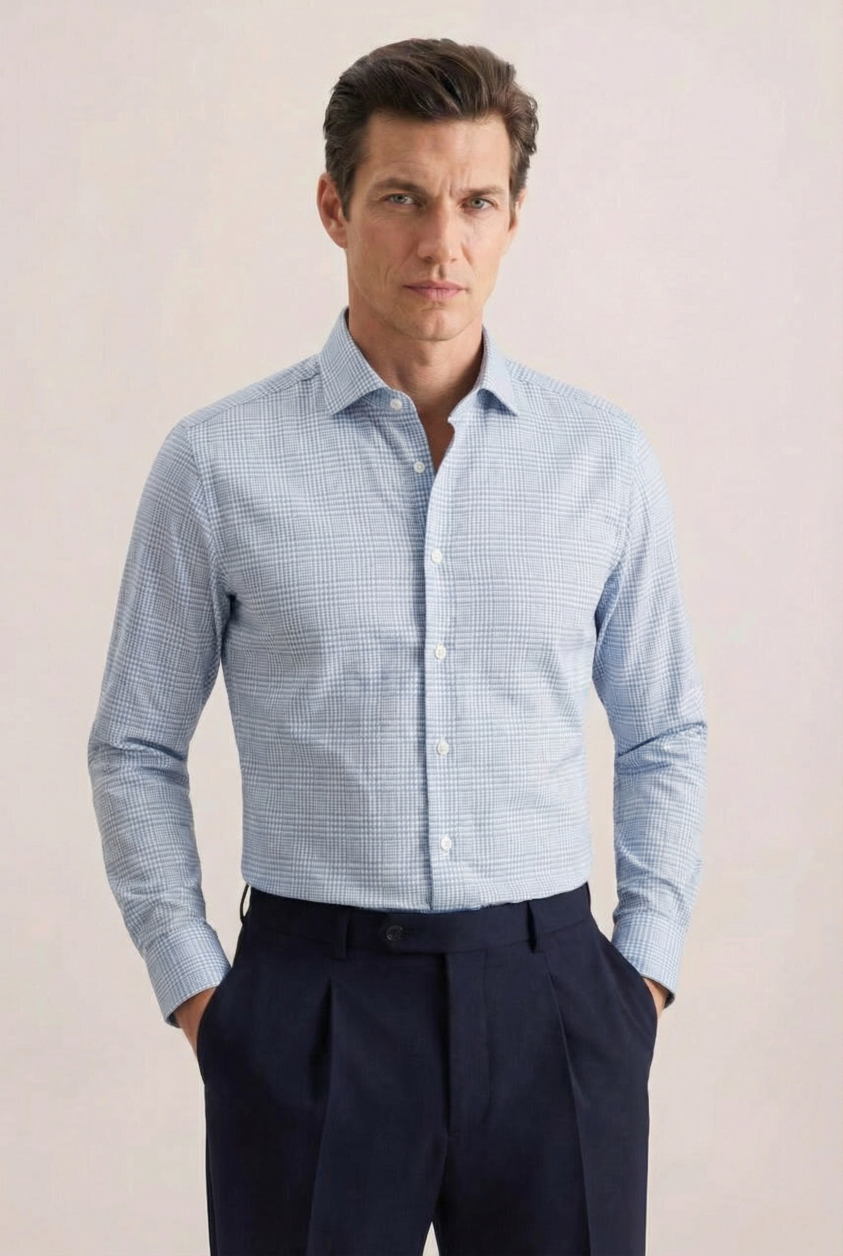 • Shaped Fit, Классический воротник, Голубой