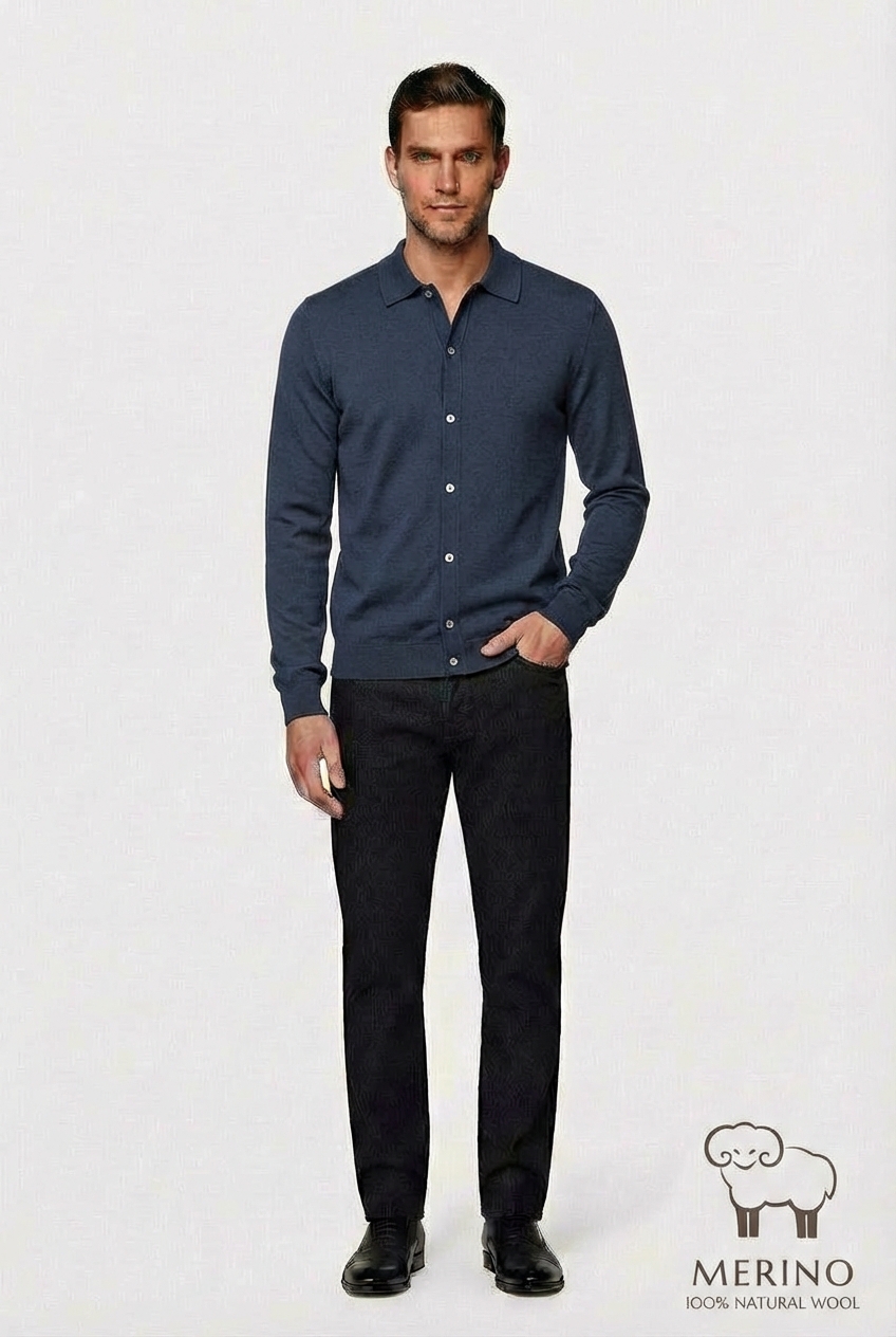 • Кардиган CAIOMARIO — это сочетание качества, современного дизайна и безупречного комфорта. Кардиган выполнен из высококачественной шерсти мериноса «Merino wool» это тонкая, мягкая и очень качественная шерсть. Она ценится за свои уникальные свойства, такие как превосходная терморегуляция (сохраняет тепло в холод и прохладу в жару), гигроскопичность (хорошо впитывает влагу, но быстро сохнет) и приятная на ощупь мягкость, благодаря которой она не «колется». Модель имеет крой Modern Fit, который не сковывает движений и обеспечивает удобную посадку. Кардиган с отложным воротником и застежкой на пуговицах из натурального перламутра. Кардиган— это универсальная вещь, которая подойдет для разных ситуаций. Этот кардиган можно носить круглый год, он будет незаменимым элементом гардероба, который всегда под рукой. Благодаря качественным материалам и продуманному дизайну, он долгое время будет радовать вас своим видом и комфортом. Подходит как для повседневного ношения, так и для создания стильных образов на выход. Выбирайте качество, выбирайте стиль, выбирайте CAIOMARIO!
