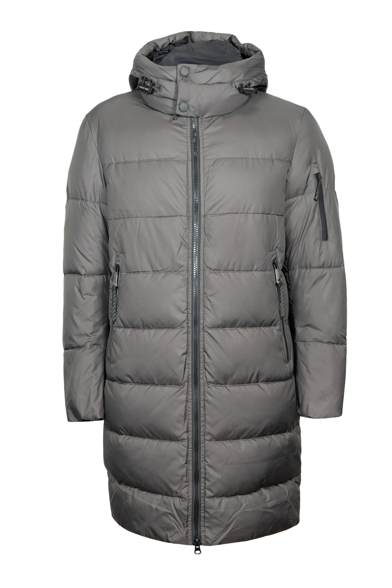 • Удлиненная стеганая куртка «VIVACANA» с капюшоном , полуприлегающего силуэта из ветрозащитного, водоотталкивающего материала . Капюшон с утягивающей кулисой. Воротник-стойка. Застежка на молнию. Два боковых кармана с застежкой на молнии. Внутри карманов для дополнительного тепла - мягкий флис. Предусмотрено два внутренних кармана. На левом рукаве карман на молнии. Для дополнительного комфорта предусмотрены две шлицы на молнии по бокам. В изделии использован наполнитель био-пух который обеспечит комфорт даже в самые холодные зимние дни. Куртка отлично подходит для повседневной носки.